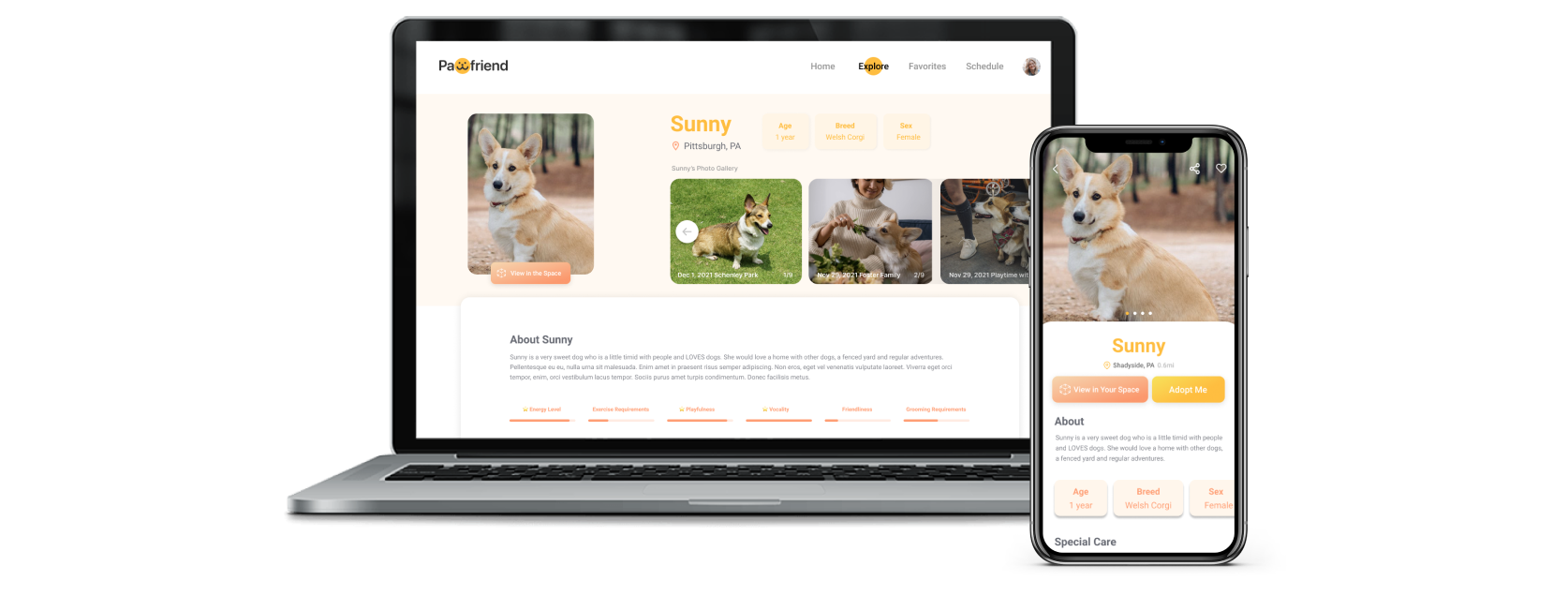 Streamlining the adoption process for customers is also beneficial for adoption centers since it will ultimately reduce time and energy for workers and in turn increase the number of successful pet adoptions. Additionally, we want to simulate the pet owning experience via AR to make the process engaging, fun, and easy to consume. Pawfriends will help the potential pet owners to better understand how their dream pet would fit into their lifestyle.