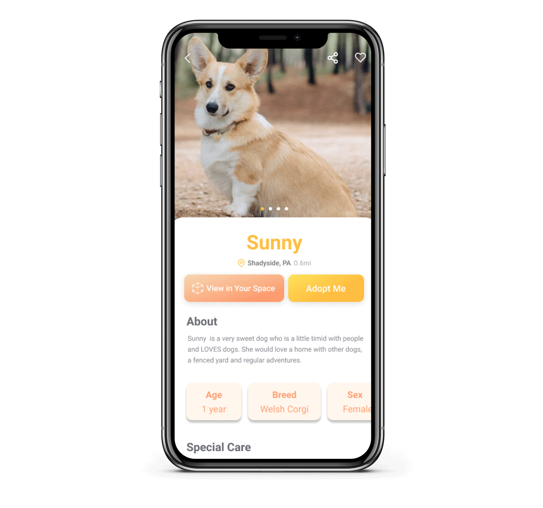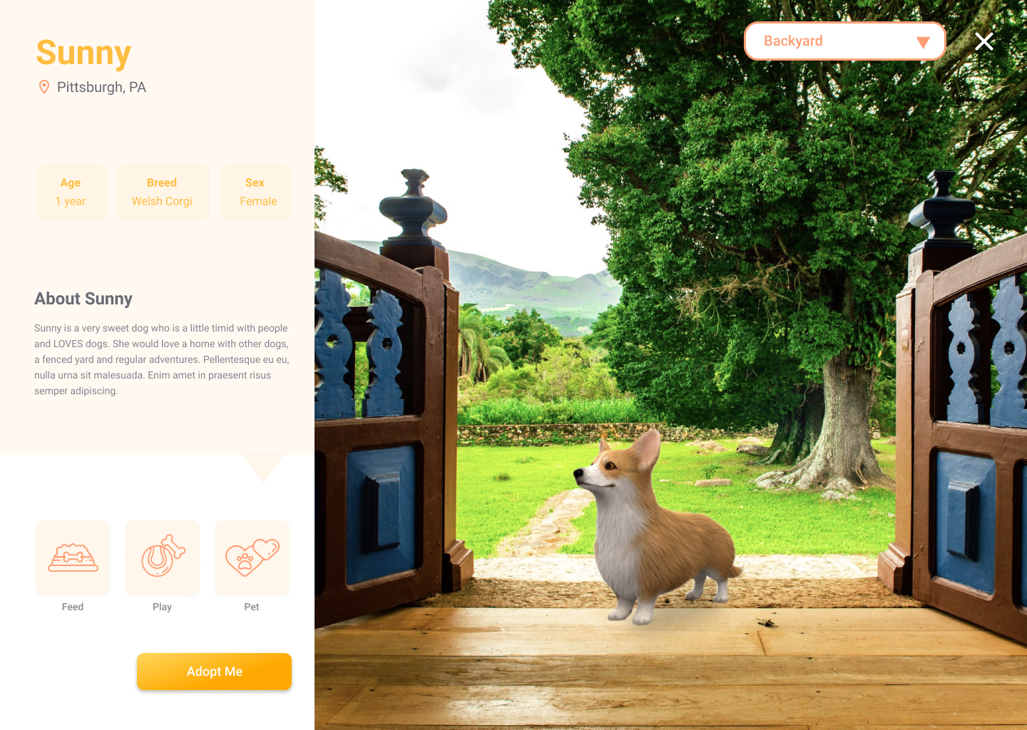 A responsive web that facilitates pet adoption by simulating the pet owning experience with AR.