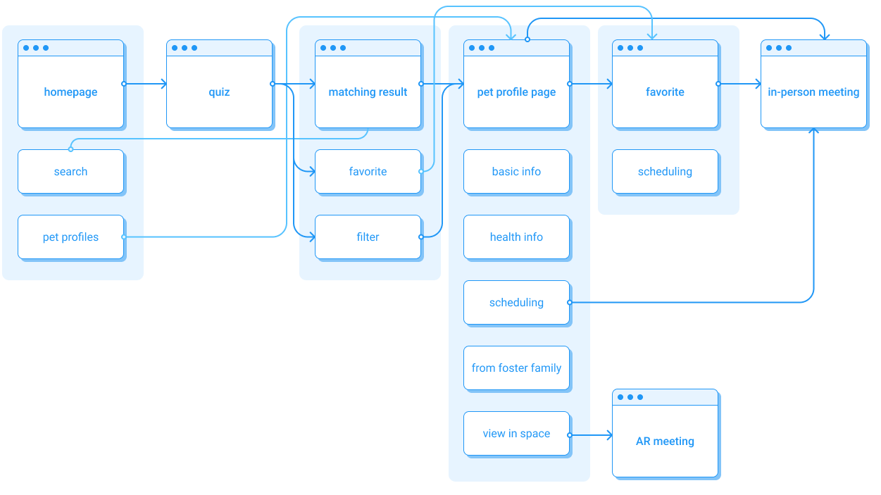 Our team decided to focus on exploring how we can improve present pet adoption processes from a daunting and arduous process to an exciting and confidence-building one. Overall, redesigning the pet adoption experience introduced many challenges and opportunities as we strived to connect user research with potential design interventions. We aimed to create a responsive website that would cater to various busy schedules and lifestyles and also increase shareability.